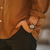La pierre de sésame blanc est rare et est considérée comme l’une des plus belles pierres aujourd’hui. Il est connu pour sa durabilité et il peut certainement résister à l’épreuve du temps. Ce qui rend cette pierre magnifique, c’est son design complexe et naturel. La tache de noir et blanc dans le marbre est très élégante à regarder. La pierre de chaque montre est différente, il n’y a donc pas deux montres identiques en termes de motifs. Aussi, l’anneau noir qui entoure le cadran en marbre donne à cette montre en bois une touche de masculinité.