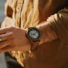 Fabriquée par des horlogers professionnels luxembourgeois, la montre en bois White Breath s’inspire de la mode monochrome. Bien que la montre semble avoir un design élégant et simple, elle est toujours très frappante et se démarquerait sûrement. Il est doté d’un verre en cristal minéral qui le rend très résistant, d’un mouvement Citizen et d’un cadran en véritable pierre de sésame blanche.